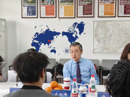 当天中午,Felix Zhu与Yvonne Yan还与即将在今年暑期赴英参加游学项目以及秋季计划攻读双学位项目的学生们进行了亲切的见面交流。两位老师结合多年组织项目的经验与往届学生参与的经历,给予同学们详尽的行前指导与温馨嘱托。两位老师特别强调了海外安全与生活自理能力的重要性,鼓励同学们在异国他乡互相照应,在保证安全的前提下,多体验当地文化,拓宽国际视野。