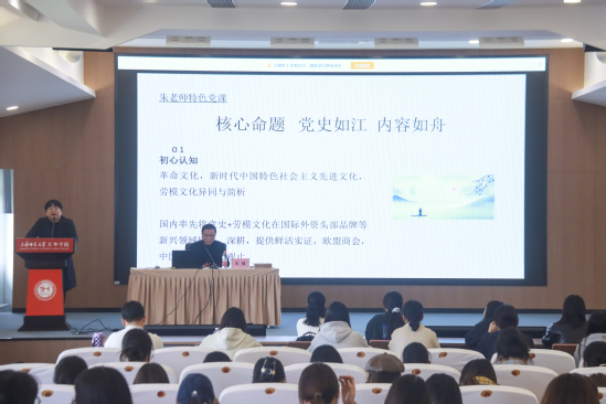 讲座以“党史如江,内容如舟”为主题,朱强老师围绕六大模块,用鲜活案例将党史学习与青年成长相结合,分享了“党史+劳模文化”实践成果,讲述跨界奋斗经历与创新实践,还通过身边榜样故事传递正能量,提出“青春方程式”,为青年学子成长指引方向。