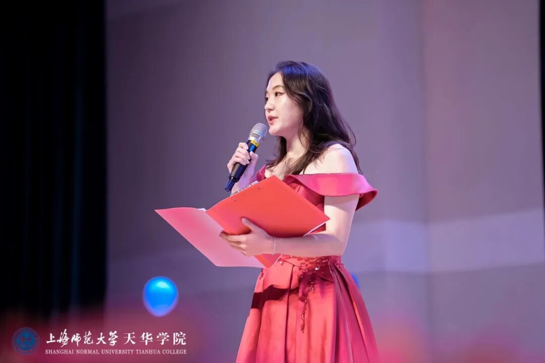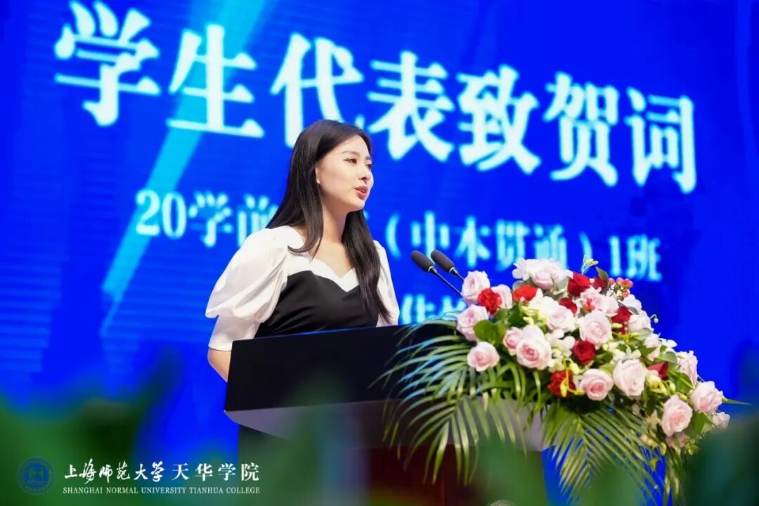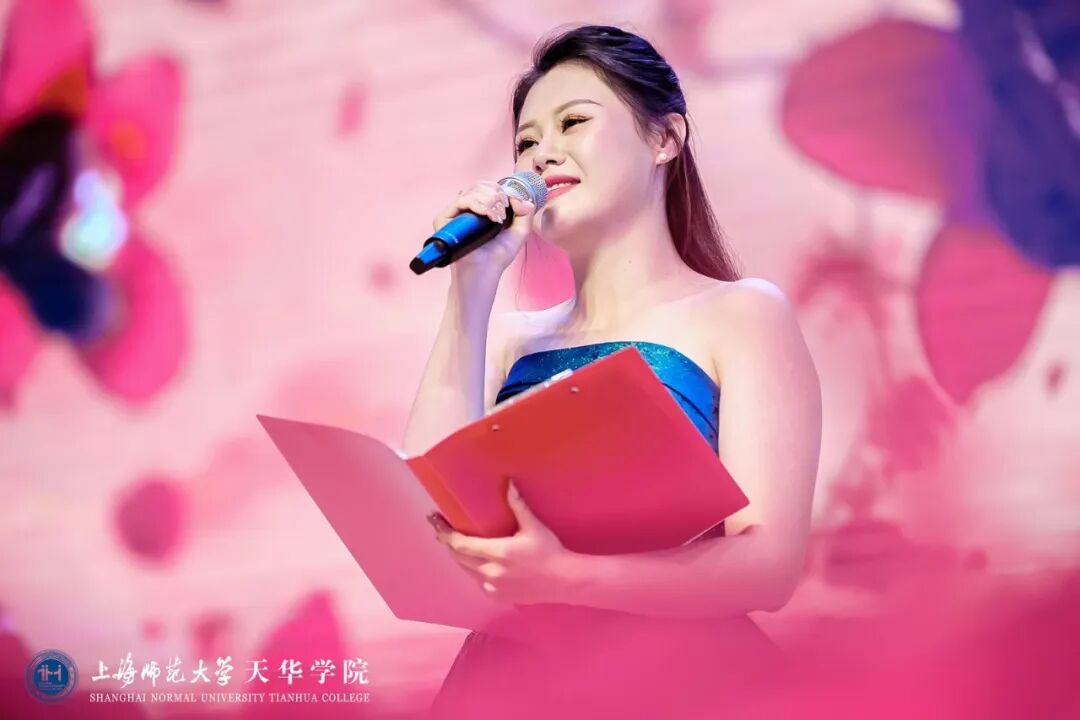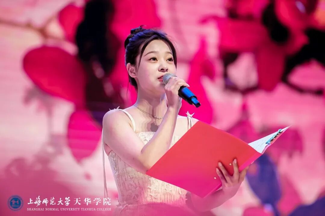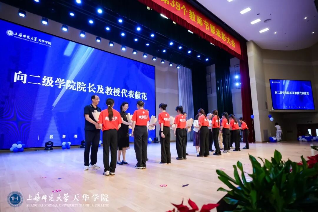 20学前教育(中本贯通)1班的葛佳怡代表全体学生向老师们致以最诚挚的节日祝福。她深情回顾了自己在天华的所见所闻所感,表达了自己对老师们的由衷感谢。她表示,未来将继续刻苦学习、砥砺品格,怀抱对教育事业的满腔热情,坚定地选择教师岗位,将天华的教育理念和老师们的无私大爱传承下去,在培养社会主义事业建设者和接班人的进程中书写无悔青春。随后,学生代表向二级学院院长和教授代表献花,表达对老师们最诚挚的感谢和最衷心的祝愿。