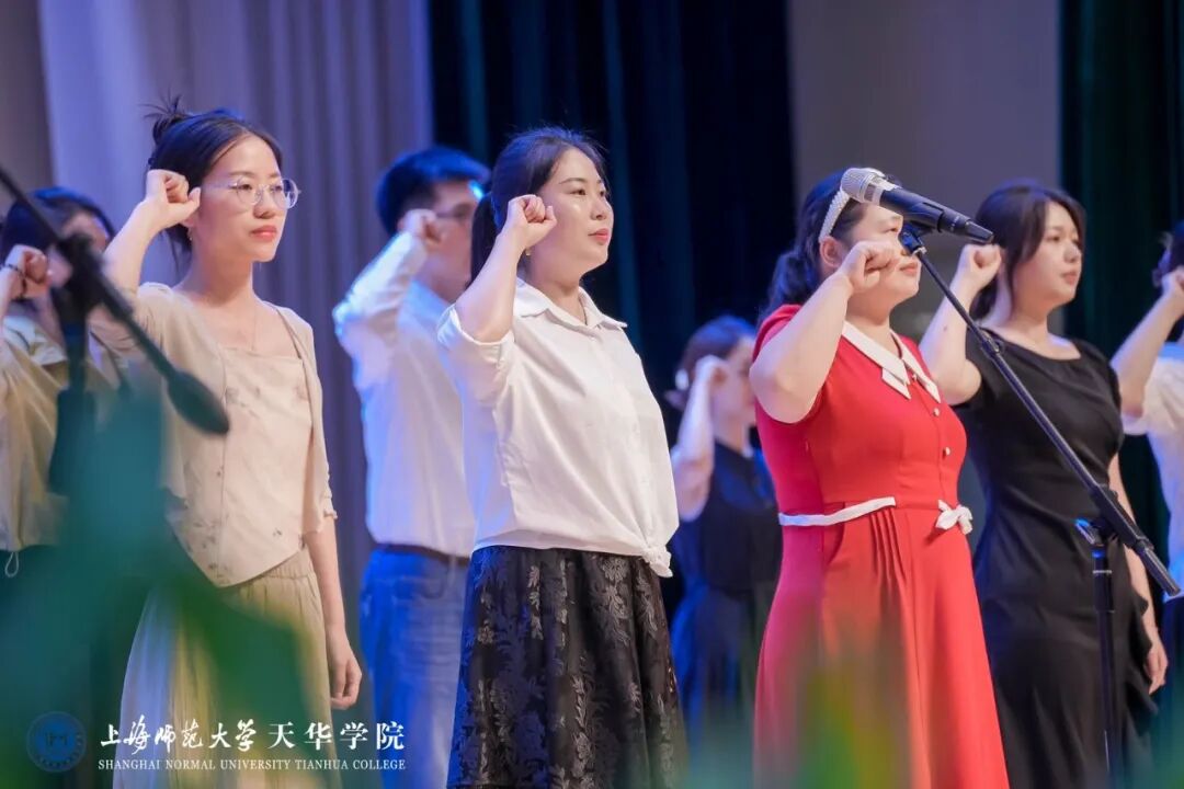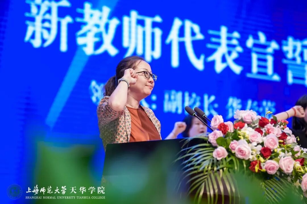 会议最后,副校长龚春蕾带领新教师进行庄严宣誓。新教师们举起右拳,郑重承诺将忠诚人民教育事业,依法履行教师职责;为人师表,敬业爱生;严谨治学,修身立德;启智求真,恪守有教无类;因材施教,注重创新发展;为科教兴国上下求索,为民族复兴广育英才,为天华末来贡献力量!