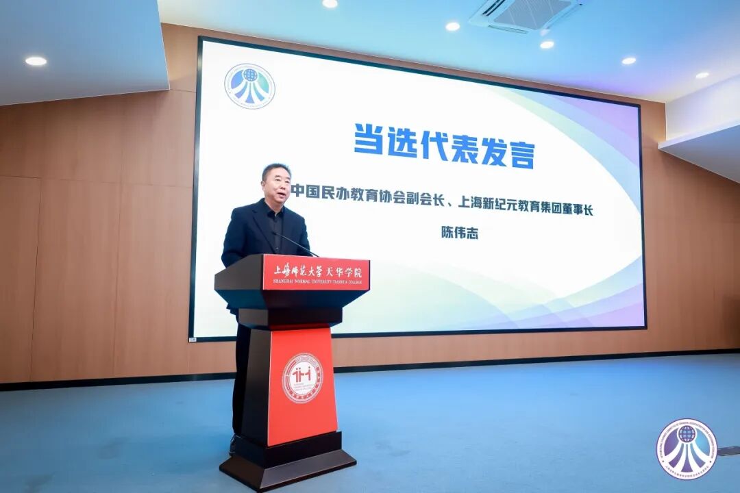 中国民办教育协会副会长、上海新纪元教育集团董事长陈伟志发言