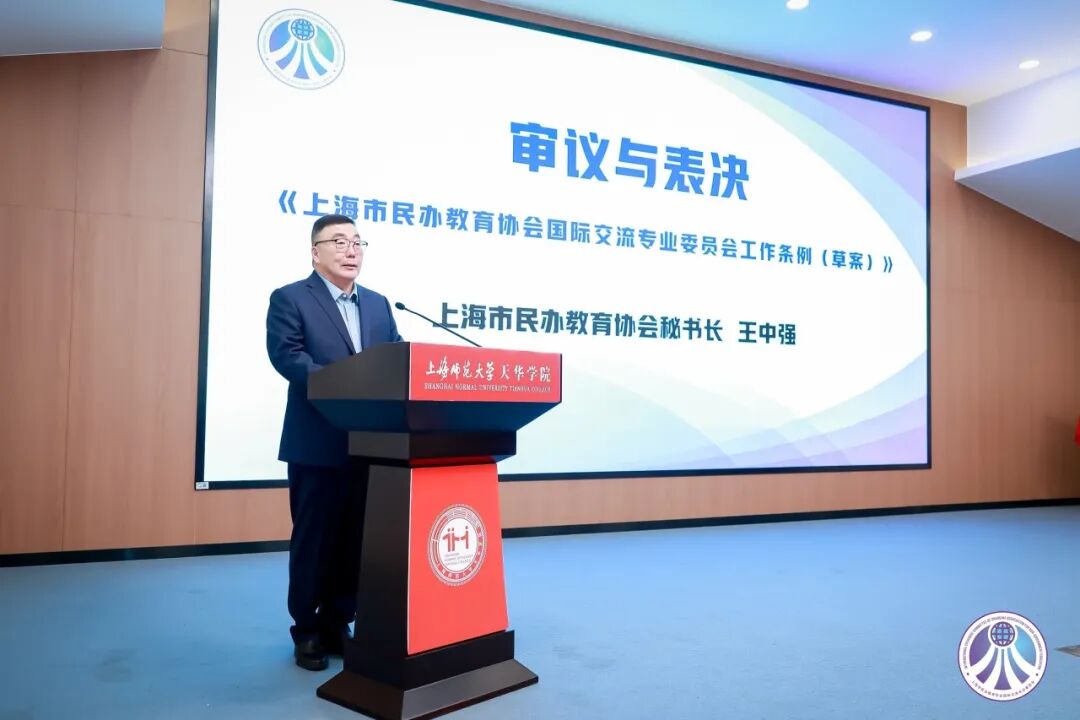 会上,经全体代表审议,《上海市民办教育协会国际交流专业委员会工作条例》正式通过,同时选举产生专委会首届委员会。高德毅为当选单位颁发聘书,王中强为当选秘书长、副秘书长颁发聘书。根据选举结果,上海师范大学天华学院出任主任委员单位,上海新纪元教育集团、 上海杉达学院、上海建桥学院、上海东海职业技术学院、上海工商职业技术学院为副主任委员单位;胡珍当选秘书长,李丽当选副秘书长。