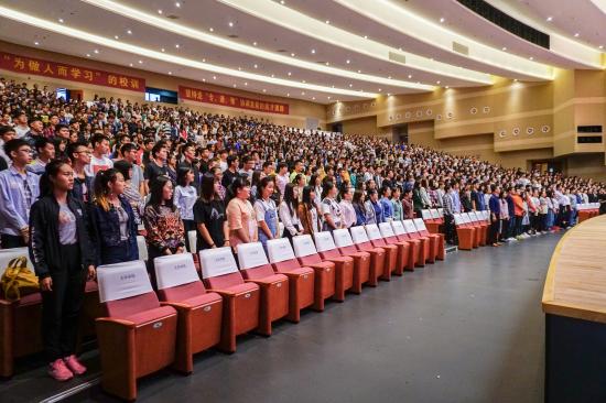 高校长的讲话引起了2017级新生的共鸣,他们都在思考,如何度过大学的青春时光,如何才能让自己的大学生活过得更有意义。希望全体2017级新生能秉承天华“为做人而学习”的校训,在天华这块沃土上充分吸取养分,不断创造新的辉煌!