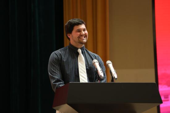 来自西弗吉尼亚大学的语言学硕士Clay Wylie老师开场以标准普通话——“你好”向2017级新生问好,表达了自己对中国文化的喜爱,他认为天华的教育管理是中西文化的合璧,既蕴含了传统智慧,又展示了现代文明。他希望全体新生认真学习,加强文化传承,增进中外交流。