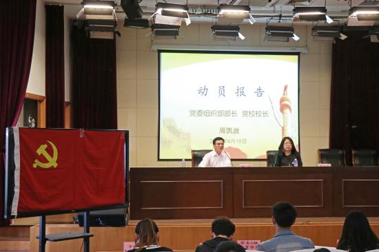 4月18日下午,学校第十七期预备党员培训班开学典礼于明华楼报告厅举行。校党委组织部部长、党校校长周凯波参加开学典礼,党校副校长单杰主持。152名预备党员参加此本期培训班。
