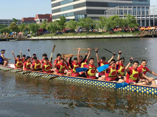 随着一声音清脆的汽笛声响,各支队伍奋力划水翻桨,龙舟破水而出,在200米的直道上竞速争夺,最终我校龙舟队以58′7的优异成绩进入决赛。在决赛中我校龙舟队更是一骑绝尘,以绝对优势荣登高校B组冠军。