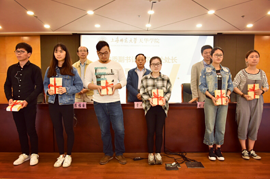 (党委副书记曹云林老师为各二级学院心理委员颁发《心理委员工作记录本》)