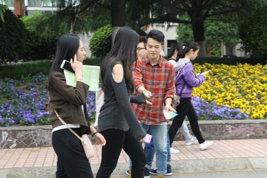 校园设摊宣传活动气氛高涨,反响热烈。活动期间,校党委副书记、学保处处长曹云林老师、学保处常务副处长刘天翔老师亲临现场,跟现场的工作人员亲切互动并对活动的开展表示肯定。大学生心理协会成员及各二级学院的心理委员提前到位,准备充分,热情地向同学们发放宣传材料和心理明信片,介绍本次活动月的具体安排,宣传情绪管理技巧等相关知识;引导同学们在横幅区签名,表达正能量。
