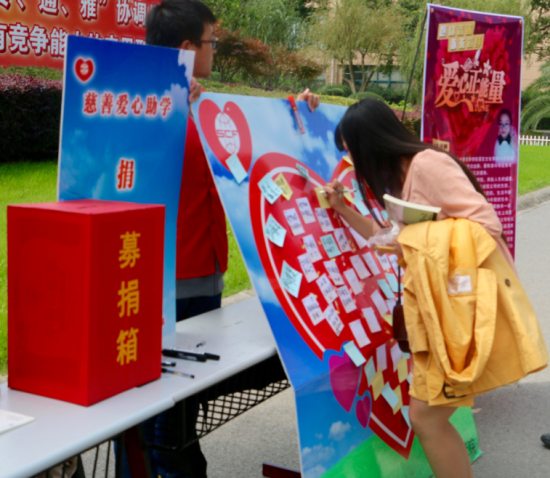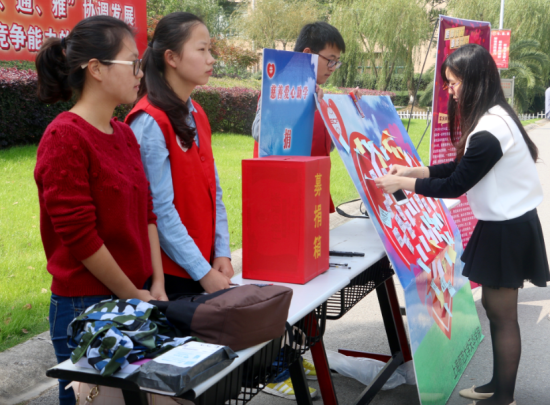 2015年10月21、22日中午,学校团委携手语言文化学院分团委在教学区与生活区之间的位置,为语言文化学院14级汉语国际教育1班的急性白血病患者郭敏同学发起了校园募捐活动。